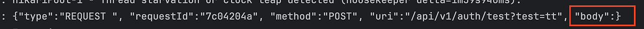 그러면 에러 발생 없이 요청 로그에 바디가 포함되는 것을 확인할 수 있습니다.