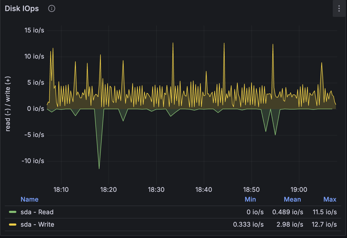 이로써 문제를 해결할 수 있었습니다. 원인을 확인해보니, 이전에 메트릭 명령어를 설치하면서 해당 스케줄러가 자동으로 등록된 것으로 보입니다. 메트릭 수집을 계속 유지하려면, 메트릭이 기록되는 디스크와 애플리케이션이 실행되는 디스크를 분리해 부하를 분산하는 방법으로도 해결할 수 있습니다. 하지만 제 경우에는 메트릭 명령어를 더 이상 사용하지 않기 때문에, 스케줄러를 중지하는 방식으로 마무리했습니다.