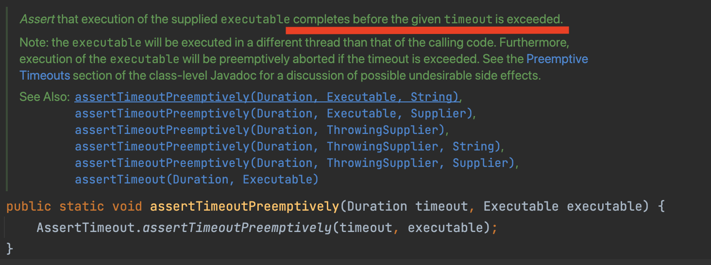 이 메서드는 내부에서 assertTimeoutPreemptively 를 사용하고 있었습니다.