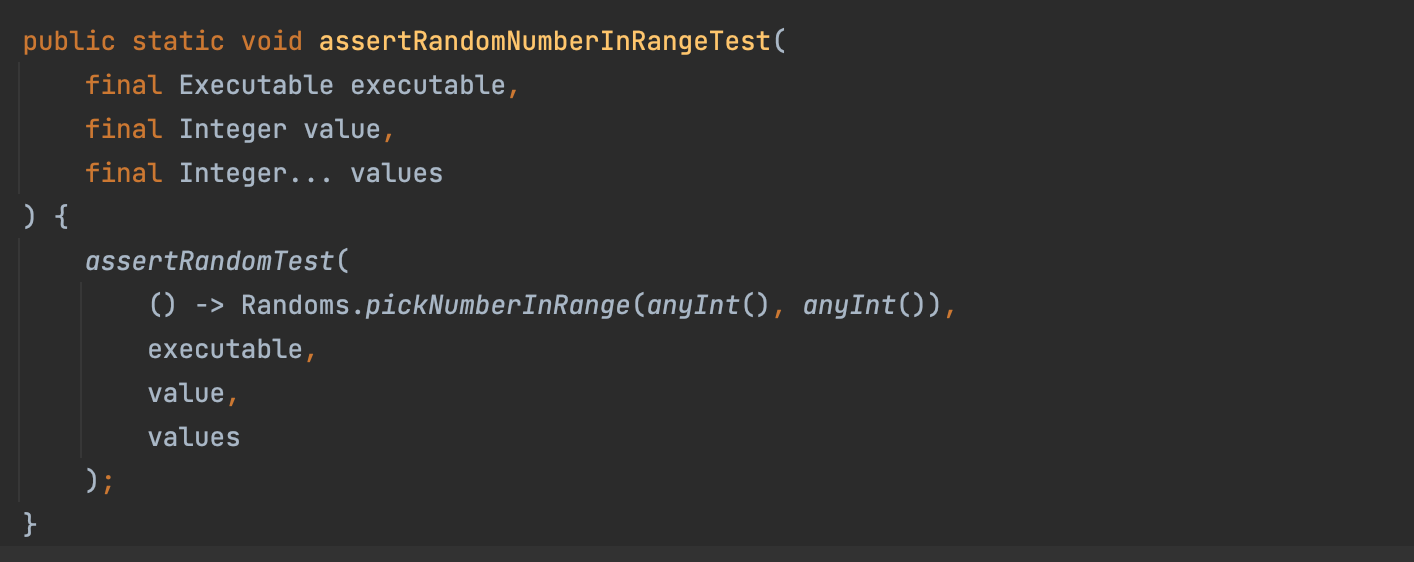 해당 메서드는 파라미터들을 받아서 내부에서 assertRandomTest를 실행하고 있습니다.