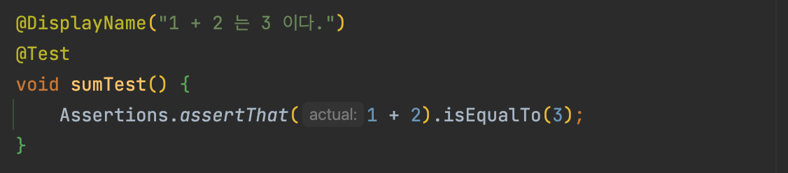 만약 해당 애노태이션이 없다면 테스트 이름은 메서드 이름으로 정의된다.