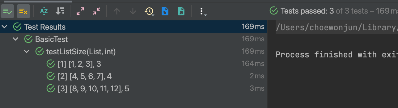 매개변수를 받는 테스트를 작성할 때 @Test 대신 사용한다.