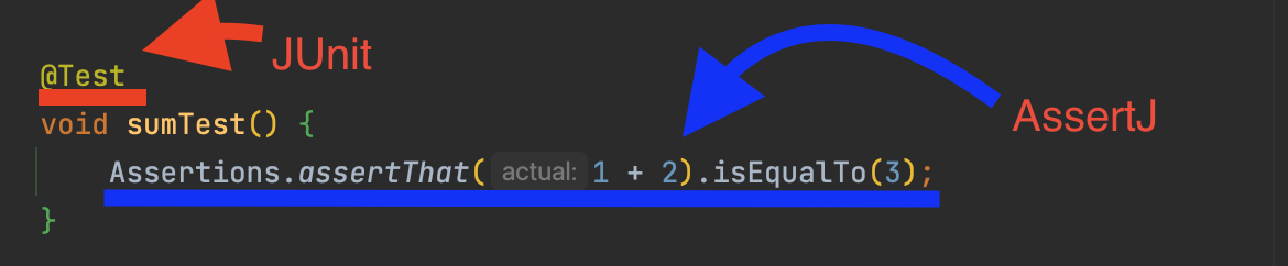 테스트 코드를 작성할 때 우리는 JUnit 과 AssertJ 에서 제공하는 기능 둘 다 사용한다.