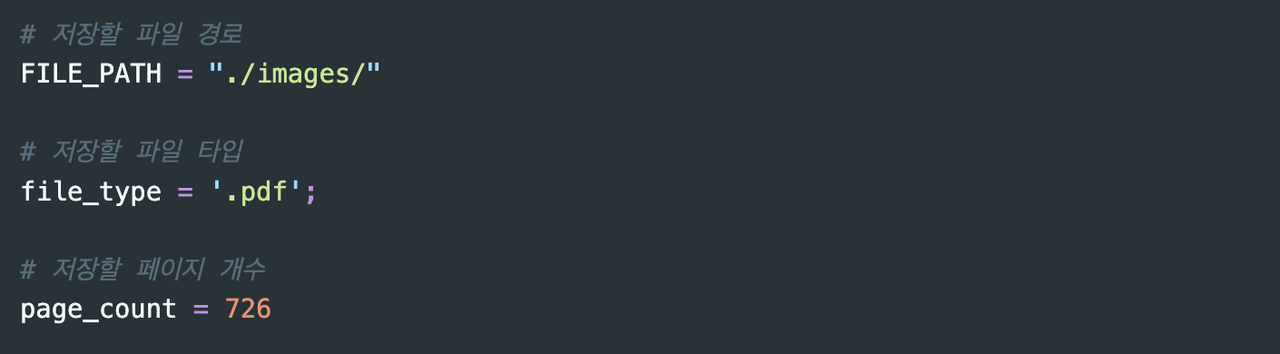 저장할 경로, 저장할 파일 타입, 저장할 페이지 개수를 설정한다.