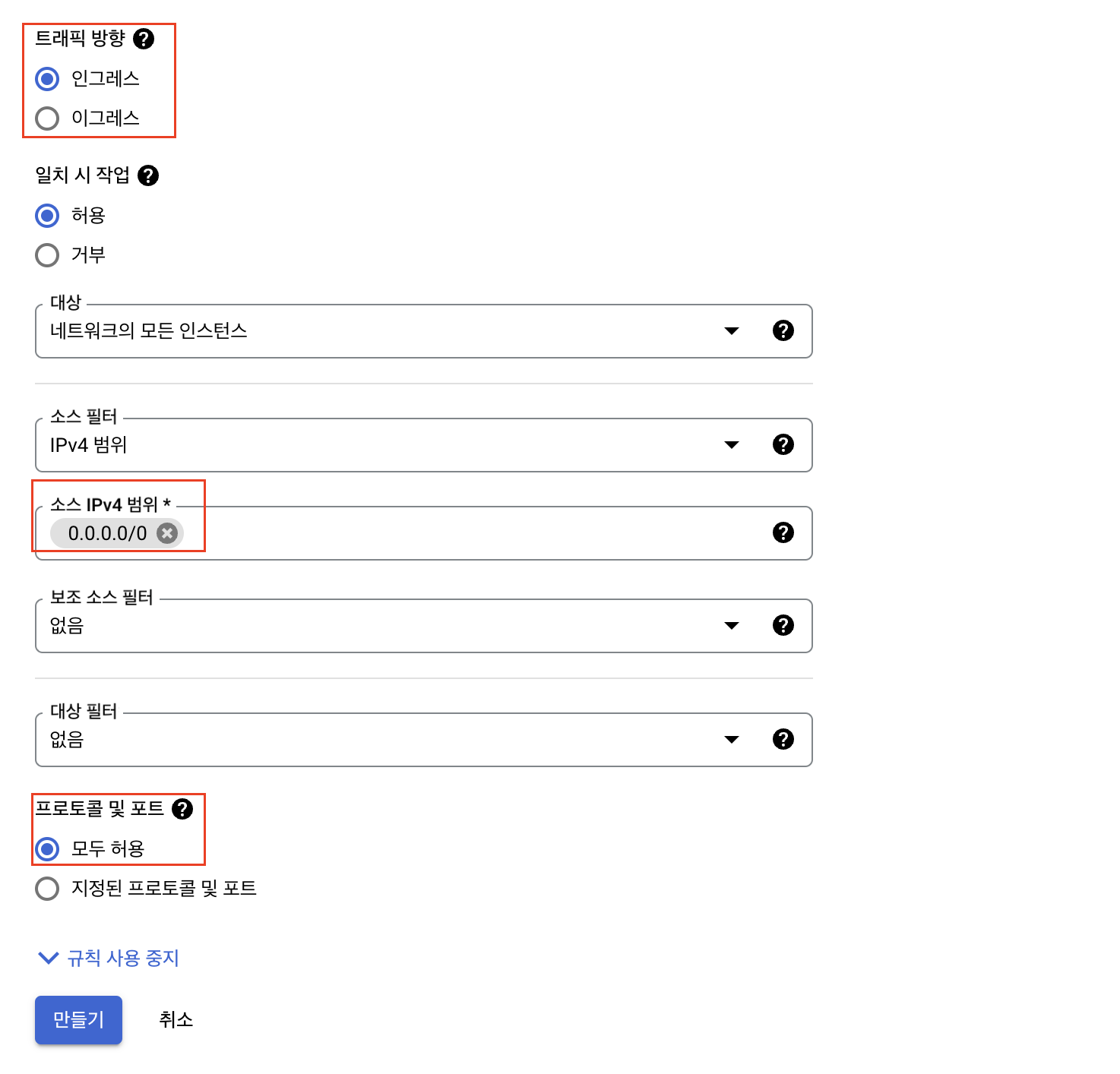 나는 GCP로 VM을 구축했기 때문에 위와 같이 설정했다.