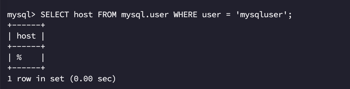 SELECT host FROM mysql.user WHERE user = '유저 이름';