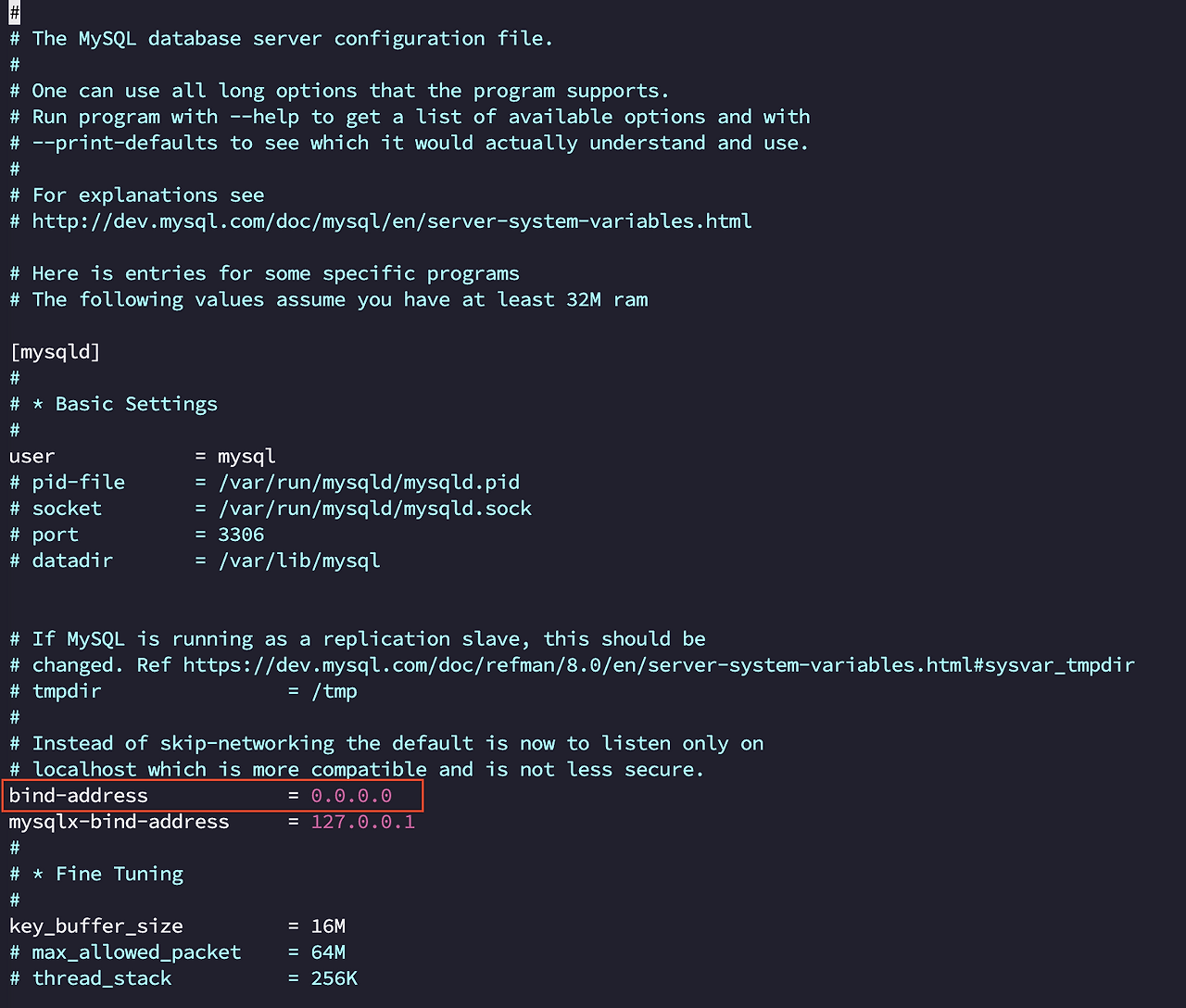 sudo vim /etc/mysql/mysql.conf.d/mysqld.cnf