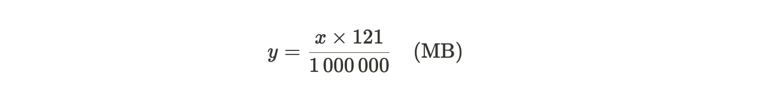 즉, y가 200MB일 때 필요한 키 개수(또는 x값)는