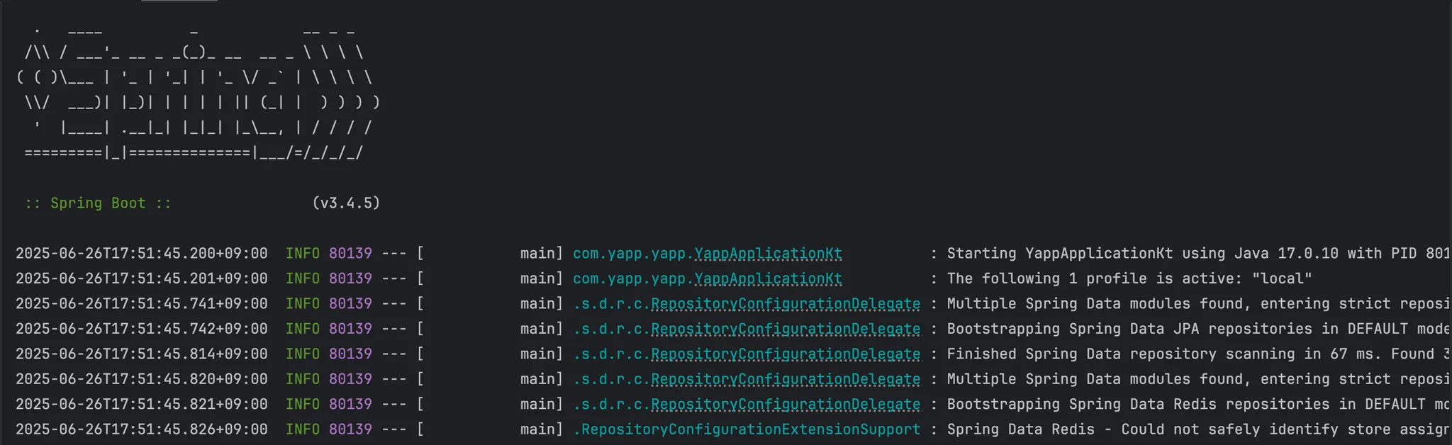 스프링을 띄우면 나오는 로그를 살펴보면 모두 일정한 패턴을 통해 로그를 출력하고 있었습니다.